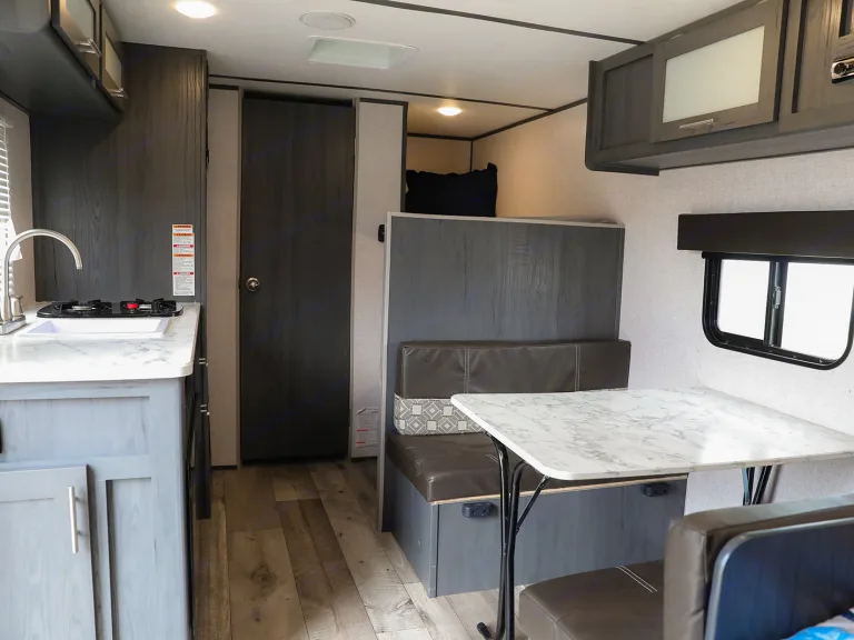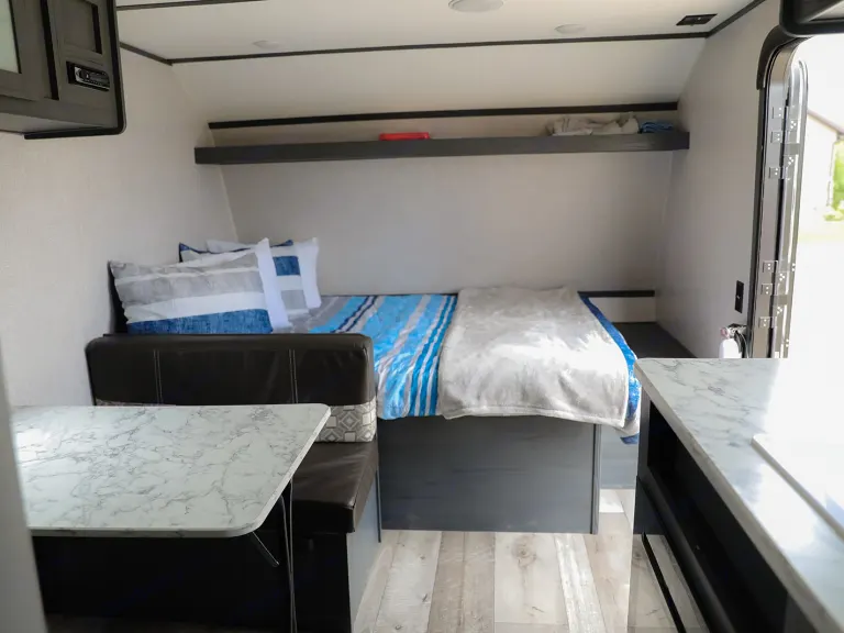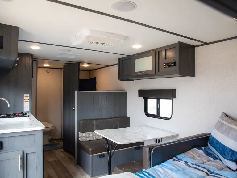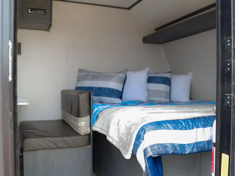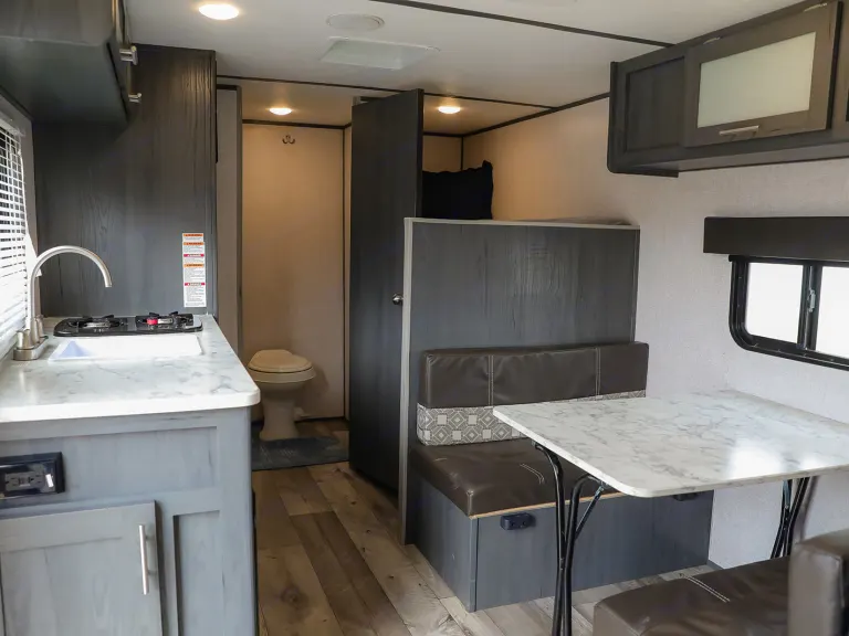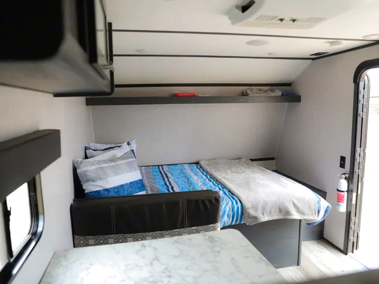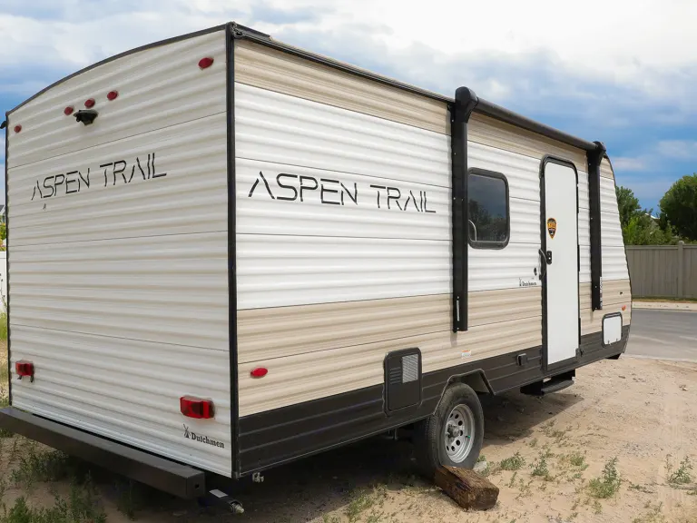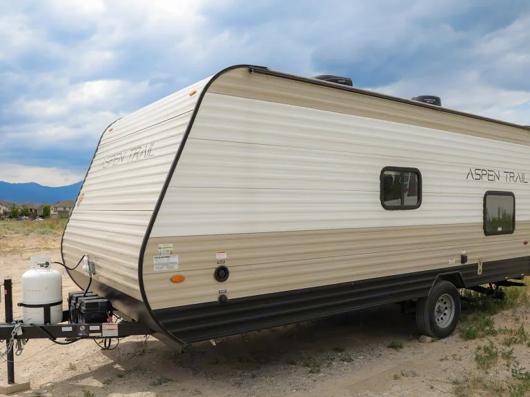 Escape into the wilderness with the Aspen Trail 17BH, the perfect RV trailer for families of up to 6, seeking an incredible camping experience! Its thoughtfully designed interior features a queen-size bed, a fold-out dinette, and 2 twin bunks, ensuring a comfortable and restful night's sleep for everyone.The fully-equipped kitchenette, complete with a refrigerator, microwave, and gas cooktop, allows for easy meal preparation during your adventures. Stay entertained with the included portable speaker, creating a lively atmosphere for bonding with loved ones.Organizing your essentials is a breeze with ample cabinet and countertop space, while the private shower and foot flush toilet provide convenience and comfort. Additionally, generous storage space enables you to bring along all your gear and equipment.The Aspen Trail 17BH is lightweight, making it suitable for smaller vehicles to pull, so you can hit the road with ease. It promises to be your family's home away from home, providing cherished memories for years to come!What's includedFresh linens, Blankets, Pots and Pans, Plates, Bowls, CupsOther things to noteWe offer a generator with an additional charge, you can supply one or rent one as well.