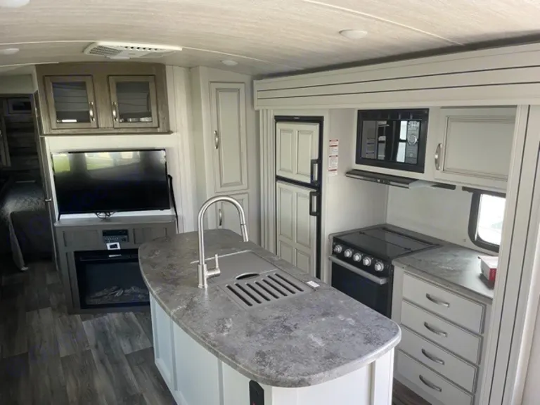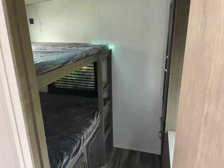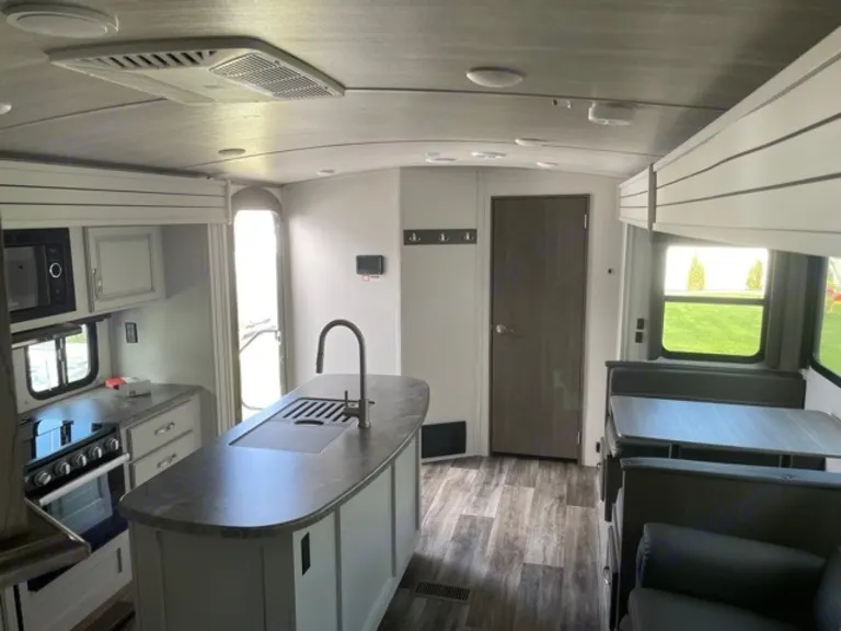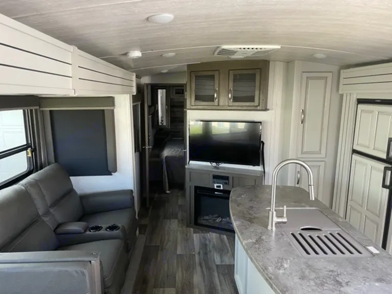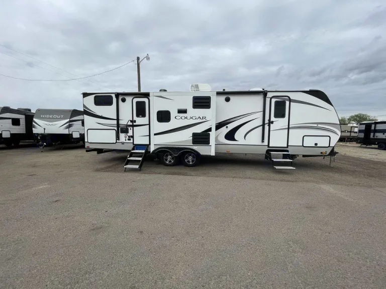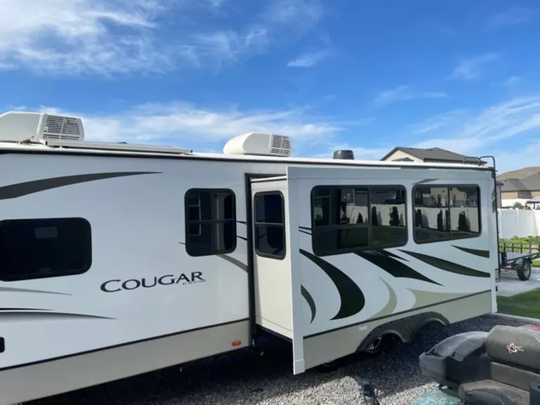 2021 Keystone Cougar Travel Trailer family friendly. No smoking/vaping permitted. No pets permitted.Fully loaded with dishes, utensils, pots, and pans, toaster, and Keurig K-Cup machine. Features 2 slide outs with a center island. Sleeps 8. Private room with king bed and seperate bunk bedroom. Table turns into bed as well. Freshly laundered sheets and towels provided. Just bring your blankets and pillows.Awning with LED lighting. . Includes built in exterior grill, exterior shower, exterior mini fridge, solar panels for off the grid camping. Automatic Self Leveling. TV in living and main bedroom with 360hd antenna, stereo/dvd player. Satelite service available for main tv for extrra fee.Anti Sway Equalizer and electric break control included. Two AC units for those hot days and cold weather package to camp later in the season. Hook ups or generators required for AC usage. Generators available for additional daily fee. Delivery options and One Way rentals available. Can be towed with most 1/2 ton trucks (ie F150 with Eco boost).What's includedFresh shees for all beds, towels, toilet paper, dish drainer, dish soap, dish towels/wash cloths , paper plates/cups/bowls, paper towels, plastic utensils, garbage bags, basic cooking utensils,pots/pans. Electornic brake controller and anti sway bar.Other things to noteThis is a family friendly unit and we do not allow smoking/ vaping. Animals are also not permitted.