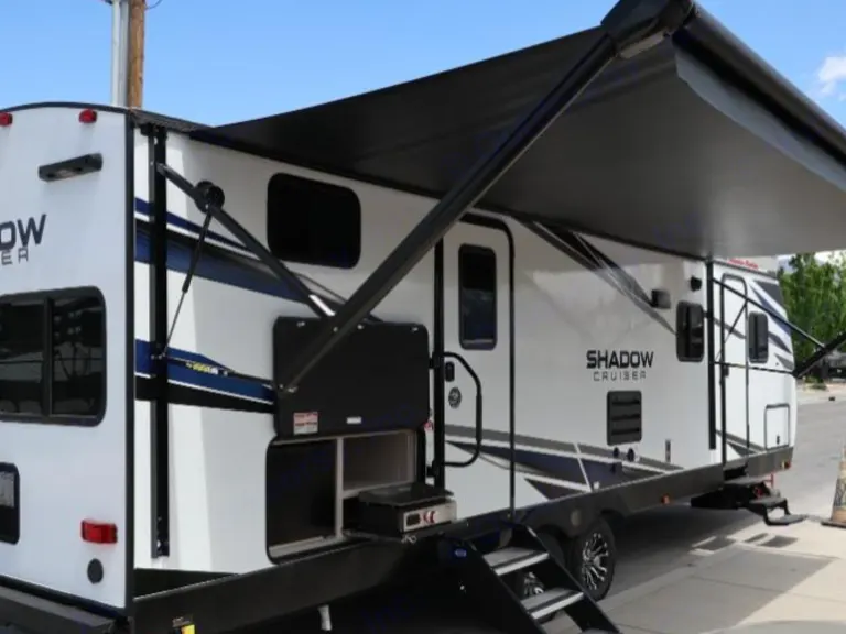 This Shadow Cruiser travel trailer will truly be your home away from home because of its ability to bring the entire family with you. With enough space to sleep nine people comfortably, this trailer makes it possible for everyone to join in on the fun. The single slide gives this trailer extra space to accommodate the walk-in pantry, and because this pantry is located right next to the entry door of this unit, you will conveniently be able to access all of your spices and canned goods while you are cooking at the outdoor kitchen.Double-Size Bunks