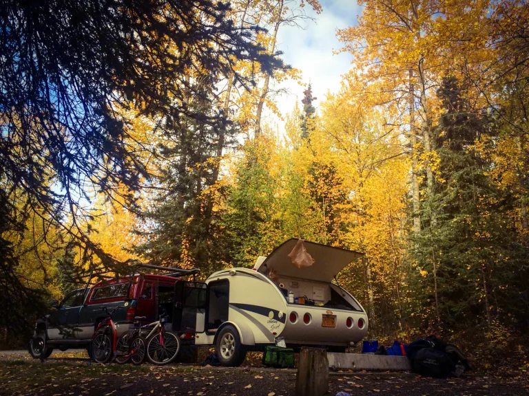 The perfect shelter for your alaskan adventure, this little guy can be towed anywhere, by almost any vehicle. With the footprint of a king sized bed, there is plenty of room for comfortable sleeping. The included tent expands your footprint considerably, and gives vertical room for stretching, and additional horizontal room for sleeping. The kitchen space off the back includes a sink and stove to cover all of your cooking needs. The platform off the front allows you to haul any number of toys to include bikes, boats, coolers, ATVs, motorcycles, you name it.