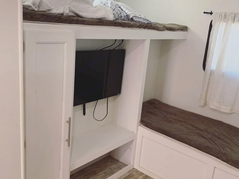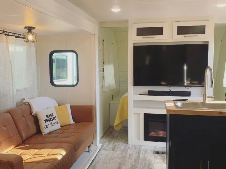 This beautifully renovated travel trailer is sure to be just what you need for a great experience!Queen bed in the front room with a TV, Five twin beds in the back bunk room with a TV, and a very comfortable couch in the living area with its own TV too!Butcher block counters beautifully finish out the kitchen with plenty of space for cooking, and a large fridge/freezer to store anything you’ll need.Or take the cooking outside to the exterior kitchen’s Blackstone grill + outdoor TV!With a door from the bathroom to the outside, it’s easy to come in to use the restroom or get cleaned up without tracking a mess through the whole trailer!Two AC units will keep you cool as a cucumber in the summer. The Extreme Weather Package paired with the furnace and/or electric fireplace will keep you toasty in the winter!What's included5 cup coffee maker; plates, bowls, utensils; pots + pans; cooking utensils; 1 roll of toilet paper per day; 1 roll of paper towels per week; small first aid kit;Other things to note*Small dogs under 25lbs are allowed with prior approval + an additional refundable deposit of $500, + $20 per dog, per day. Any evidence of animals on board without prior approval will result in a $1,000 fee incurred.* All beds need to be properly covered with a fitted sheet. If you do not have the sheets to fit, we can add on linens for $30 (includes sheets + blankets for all beds, eight pillows with pillowcases, eight bath towels, eight wash cloths, a few hand towels, and a few dish towels.)*We require tanks to be returned empty. If they are not, a $250 fee will be incurred.*We do not allow towing; delivery only.*Delivery charge is variable, depending on current market rates; maximum of 100 miles. On drop off days we typically drop off by 5pm, and pick up by 11am on pick up days - location, weather + other factors may alter these times.*No dry camping or boondocking. Must have at least 30amp electric access, water + sewer hookups on site. Renter responsible for verifying these hookups, or else rental will not be fulfilled, and/or cancelled, potentially with no refund. Air conditioning + refrigerator will likely not run well or optimally on 30amp service in summer.*Toxic Products not allowed. We provide cleaning products (all purpose cleaner, hand wash, dish soap, air freshener) and no other products are to be used, or sprayed on board, including perfume, cologne, air fresheners, hair sprays, antibacterial wipes, sunscreen, big sprays, etc. A fee of $500 will be incurred, and security deposit not refunded, if it is suspected that these harmful products have been used.*Propane tanks go out full, and are required to come back full. If not returned full, renter incurs cost to fill, plus a $59 fee per tank.*No smoking OR vaping; will result in a hefty fee.* Awning is not to be used. Oklahoma wind will destroy it.