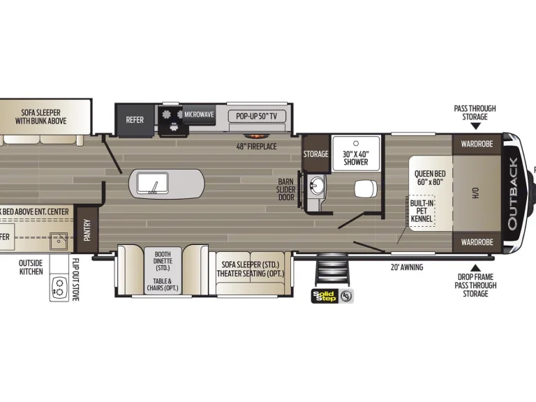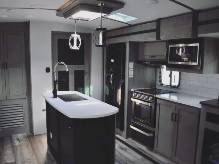 ** Also ask us about our Compact Bunkhouse Abode that sleeps 5-6, has all the amenities for comfort, and is towable by all trucks and most SUV's! OR our beautifully Renovated Bunkhouse Abode which can sleep 8, has a bunkroom with Five twin beds, Four tv's including one outside, and a Blackstone grill outside!!Three slide outs make for a huge common area, with cozy reclining theater seating, a 50 pop-up TV with DVD player + fireplace! The dining table is great for meals or games, and converts into a bed.The kitchen has enough space + countertops that at least two people can comfortably prep a meal together! The island kitchen sink has a skylight overhead, and the refrigerator can hold its temp for two days without electric. Kitchen comes stocked with all the basic kitchen essentials youd need to cook, and enjoy our trailer in comfort.Enjoy the privacy of an actual bunk room, not bunks in the living room like many other trailers! It has hookups for a small TV, lots of shelves + cabinets for storage, two twin bunks, and a Nugget Couch! The Nugget Couch is so fun for kiddos to play on, and also serves as a cozy sleeping space for two people. You can add on up to two additional Nugget Couches to max out a sleeping capacity at Fourteen!The bathroom is quite roomy with a large shower; not one of those tiny corner showers! With the skylight overhead, we guarantee youll enjoy it!The bedroom has TV hookups + the queen bed is the perfect space to settle in + rest after a great day! There is plenty of closet space to hang clothes, and cabinets to store things.Outside, youll find two hook-ups for TVs, a large cargo area to hold your extras, and an outdoor kitchen! The outdoor kitchen has its own fridge, two burner cooktop, sink with hot + cold water, and good counter space! What's included5 cup coffee maker; plates, bowls, utensils; pots + pans; cooking utensils; 1 roll of toilet paper per day; 1 roll of paper towels per week; small first aid kit;Other things to note*Small dogs under 25lbs are allowed with prior approval + an additional refundable deposit of $500, + $20 per dog, per day. Any evidence of animals on board without prior approval will result in a $1,000 fee incurred.*We require tanks to be returned empty. If they are not, a $250 fee will be incurred.*We do not allow towing; delivery only.*Delivery charge is variable, depending on current market rates; maximum of 100 miles. On drop off days we typically drop off 3-5pm, and pick up by 11am on pick up days - location, weather + other factors may alter these times.*No dry camping or boondocking. Must have at least 30amp electric access, water + sewer hookups on site. Renter responsible for verifying these hookups, or else rental will not be fulfilled, and/or cancelled, potentially with no refund. Air conditioning + refrigerator will likely not run well or optimally on 30amp service in summer.*Toxic Products not allowed. We provide cleaning products (all purpose cleaner, hand wash, dish soap, air freshener) and no other products are to be used, or sprayed on board, including perfume, cologne, air fresheners, hair sprays, antibacterial wipes, sunscreen, big sprays, etc. A fee of $500 will be incurred, and security deposit not refunded, if it is suspected that these harmful products have been used.*Propane tanks go out full, and are required to come back full. If not returned full, renter incurs cost to fill, plus a $39 fee per tank.*No smoking OR vaping; will result in a hefty fee.* Awning is not to be used. Oklahoma wind will destroy it.* Sheets, pillows, pillowcases, and blankets for all beds, eight bath towels, hand towels, and wash cloths are $40 per rental.