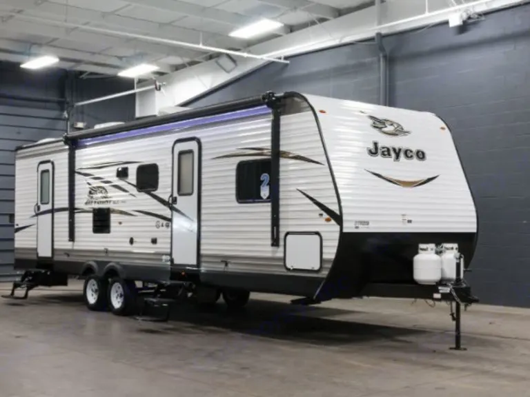 We're excited to help you build memories with your family that will last a lifetime!Brand New 2018 Jayco Flight SLX 287BHS 33'.5" Travel Trailer with Plenty of space and all the amenities of home! Sleeps 8+ people with Camper Queen upfront and 2 large bunks in the rear. Additional beds in U-shaped dinette (which also gives your family plenty of space to eat inside, if needed) and a pull-out couch. Also included: fridge, stove top, oven, Huge shower in bath with separate entrance/exit of camper - perfect for a child's quick trip in and out, LED's throughout, mega slide out, integrated speakers w/bluetooth inside and out, beautifully lit LED's under electric awning, 15k BTU AC, 32" flat screen TV w/remote that is capable of free, over the air TV (but camper also has coaxial Satellite/Cable hookup if the park offers it) - all for use on a 30Amp Service.We will also provide plates & bowls (service for 4), some cooking supplies/utensils, bath towels and clean/fresh bed linens! Please note: Only RV grade toilet paper and black water tank drop-ins Must be used.**What you will need to bring - Yourself! Any specialty items (food), pillows, blankets, napkins, cutlery, paper towels etc. Absolutely NO diapers or feminine hygiene products can be flushed. If found, partial security deposit will be withheld.**You Must have brake controller installed and factory/frame hitch. We cannot offer delivery and setup at this time.