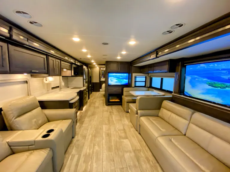 Olena and her husband were excellent hosts. Great communication and throughout our trip they checked in to make sure we had a good experience. The RV was clean and it felt like it was brand new. Having a second bathroom was a plus traveling with kids. The little ones enjoyed all the entertainment options. The beds were comfortable. The kitchen had everything we needed. Plates, pots, glasses, etc. The RV performed great and we had zero issues. It ran smooth, quite, and safe down the highways and provided a luxurious space to relax while traveling in style. I would recommend renting from Olena and her husband 100%.