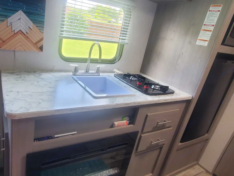 2022 Coleman Lantern 17B- queen size bed, 2 bunk beds, and dining room table that converts to a full sized bed. Air-conditioning, Keurig, electric fireplace heater, sink, microwave, mini-fridge and stove are located in main area. Bathroom includes toilet and shower. Lots of storage under beds and benches. Awning usage is allowed.What's includedIncludes 2 zero gravity chairs, 2 camping chairs, and 1 easy up. We will provide 1 Boss Audio portable speaker. There is a Roku TV on a wall mount with access to Netflix, Hulu, and your favorite streaming services that you are able to sign into. We will provide one package of plastic utensils, cups, paper plates and paper towels. One package of 4 RV safe toilet paper, one Keurig coffee maker with 6 k-cups to get your started. Extra sheets and blankets will be ready and clean in the storage area. Four standard towels and wash cloths. A grilling utensils set with skewers. All of this is provided with the rental at no extra cost.RecommendationsOur favorite location is at chester frost park on a water front spot. The summer breeze coming off of the water is a great way to enjoy a staycation in a busy city!Other things to notePlease clean up while traveling. Do not allow pets or children to damage trailer or screen door. Be respectful and responsible. We want everyone to be able enjoy the beautiful outdoors in a clean environment. 💚