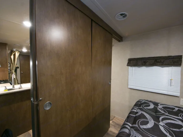 Delivery Only. Client Tow not allowed.Pet Policy: Dogs Only, Owner is severely allergic to cats.Master Bedroom: Large private bedroom with queen bed and closets.Bunkroom: 1 sets of double sized bunks.Misc Sleeping: The dining table and couch also convert to beds for additional sleeping.Indoor Kitchen: Comes with pots and pans, coffee pot, toaster, dishes, utensils, knifes, plates, bowls, scrub brush, broom, and mop. Also comes with microwave and stove top/oven.Entertainment: Comes equipped with TV in living room and radio.Bathroom: Toilet, sink, shower, toilet paper, septic tabs, and bathtub.YOU Provide: linens (sheets, blankets, pillows) and towelsWHY Rent With US?