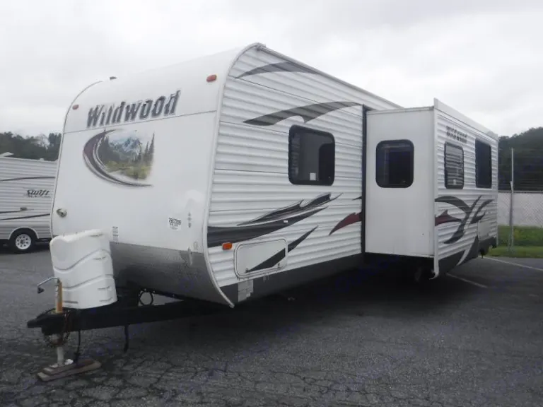 camper can sleep 8-10 has outdoor kitchen. The layout as u walk in the master bedroom is to the left has a jack knife couch, u shape dinette. As you walk thru the back of the camper has bunk on the one side and the other has another dinette for the kids and a another bunk over that.