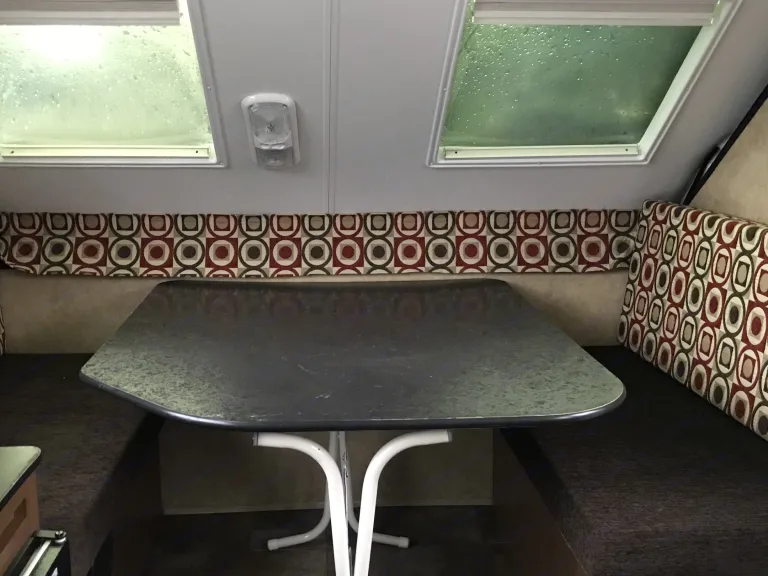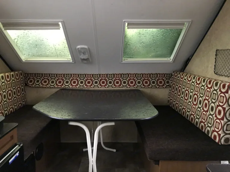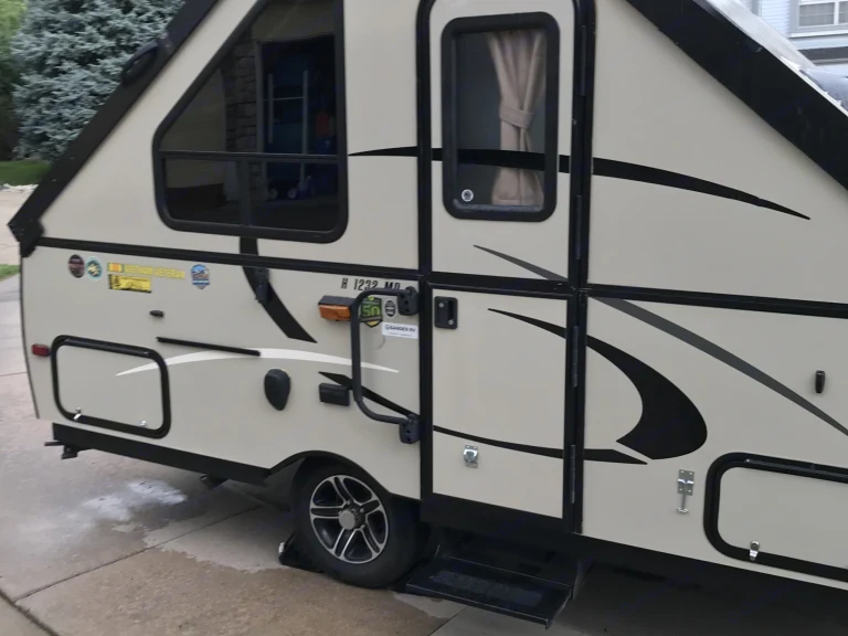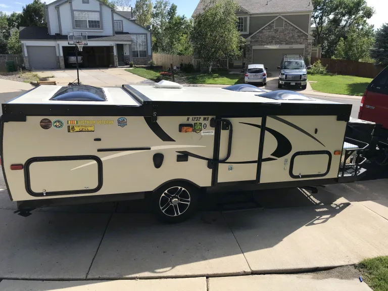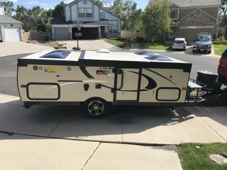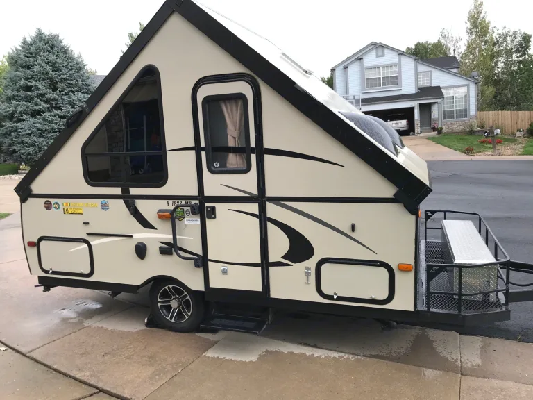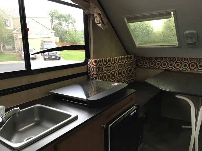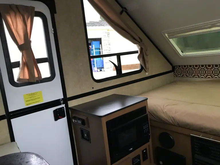 This A frame will sleep 4 adults. It has a radio, Air conditioning, stove, heater, refrigerator, sink, microwave, two propane tanks, an external shower, an electric tongue jack (for ease of raising and lowering trailer to attach to vehicle), an extra front storage rack for bikes, chairs, and other additional camping equipment. Also available for rent; a new gas grill with a "quick attach" to camper gas supply, a port-a-potty, camp chairs, and generators to provide additional power. This camper will give you plenty of camping fun and enhance your adventures.