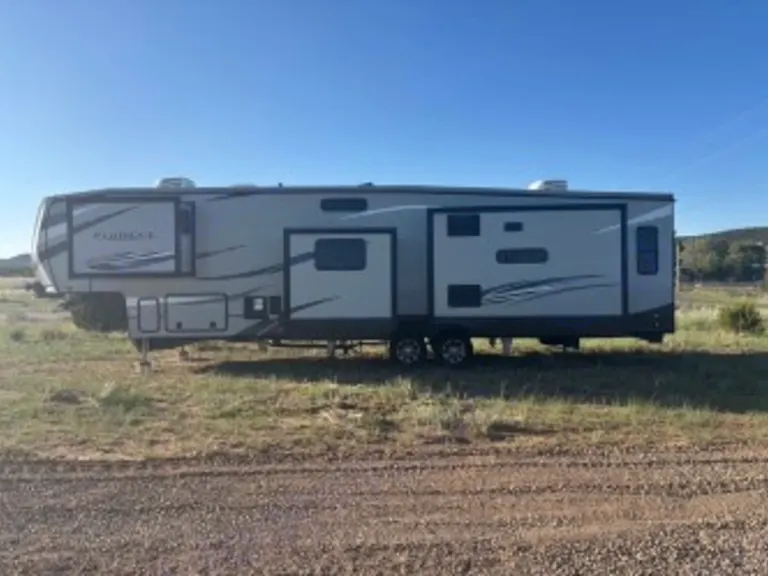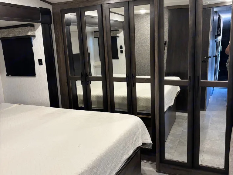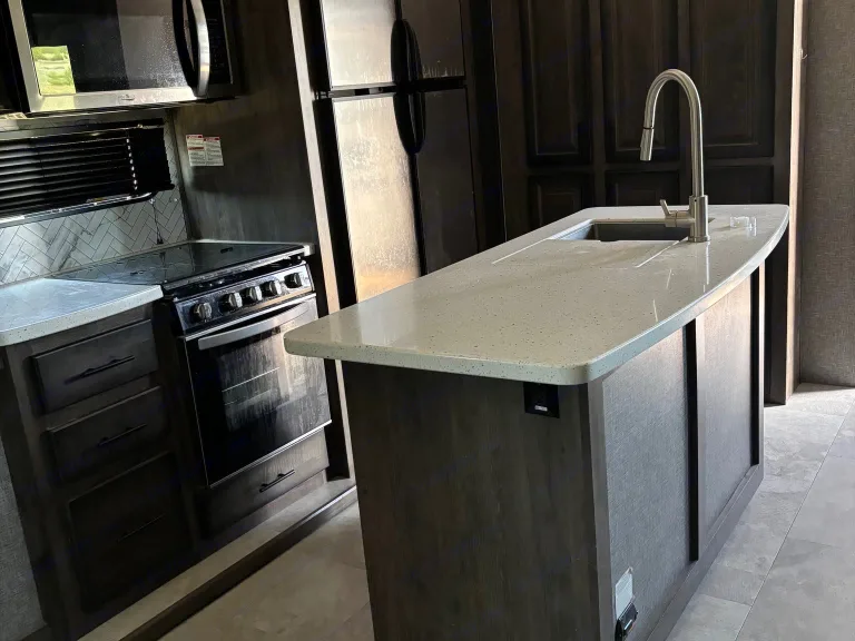 This spacious fifth-wheel offers a true home-away-from-home experience for up to 8.