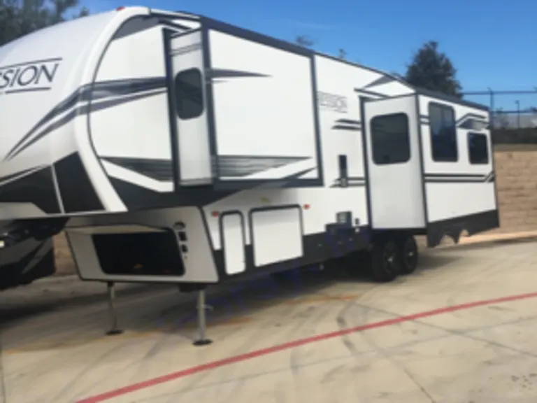 Fifth Wheel three Slides 50 inch Smart TV in living area King Size bed with Smart TVWhat's includedFresh Linens, Camping Chairs, BBQ Pit, Outside Kitchen