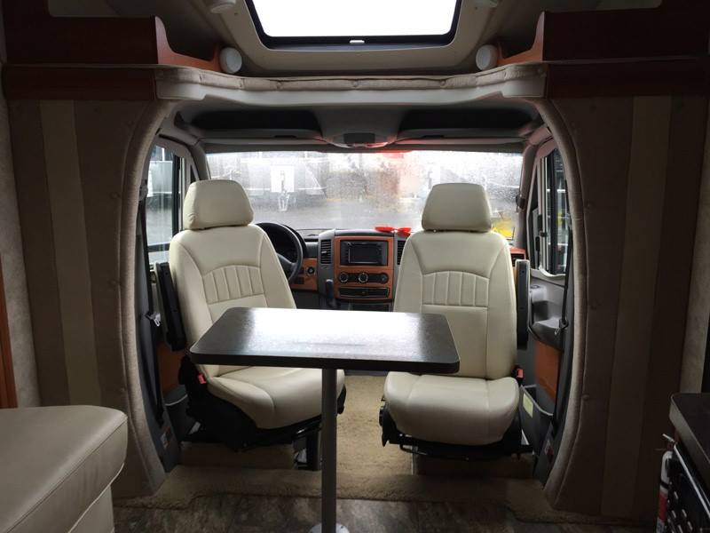 Feel at home with this lovely home on wheels comes equipped with Navigation to guide you to your destination flawlessly. You can hook up to share power for the comfort of Air Conditioning to keep you cool or the heater to make it toasty. Turn the captains chairs around and put up the table for before dinner, appetizer and drink while your meal is prepared either on the two burner stove or in the microwave. Enjoy one of the two TVs or the Blu-Ray player while relaxing. When it's time to sleep in the comfort of the queen size bed, side sofa air bed is very comfortable sleep for two. The climate control keeps your cabin at the temperature you set. For dining outside, the power awning keeps sun or rain away and has automatic folding in case strong winds come. You can sit under the awning and plug in TV on the camp table or just listen to the sound of wind in the leaves or birds on the twigs. There are LED lights that rim the awning and lights under the chassis. This luxury van is equipped with an outdoor shower (hot and cold) to rinse off after the beach or a run.