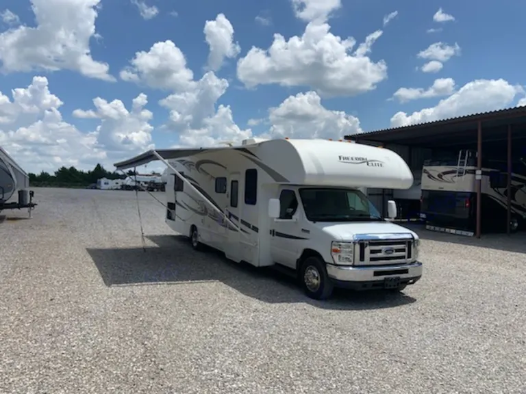 Well maintained modern Class C RV, 2013 Thor Freedom Elite 31R, 32.8 ft long. Ford E450 V10 engine with 67k miles, sleeps 8, surround sound system, 2 TV's front and in master bed area, new navigation radio, Never smoked in, and PET Friendly.What's includedIncludes camping chairs and tables, cooking utensils/cookware, linens, bike rack for 3 bikes, portable gas grill, canopy lights, sun screen for canopy area, and all hookups.