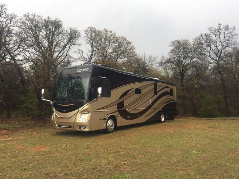 40ft diesel pusher with king size bed, bunk beds, queen size sofa bed, dinette makes into a bed as well. Opposing slides: one is full length the other is half. Residential refrigerator, dishwasher, gas stove top, washer/dryer, 4 TVs with one outside, RV GPS, large basement for storage, on-board generator , patio awning. This is a very nice rig! Does great in the mountains with a 380HP Cummins Diesel engine, vey quiet ride with low engine noise. Easy set up with video and personal instructions.