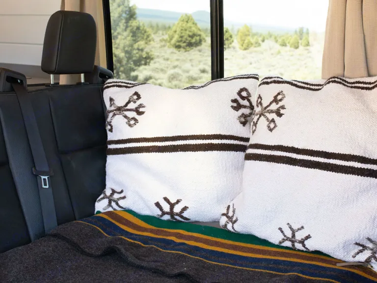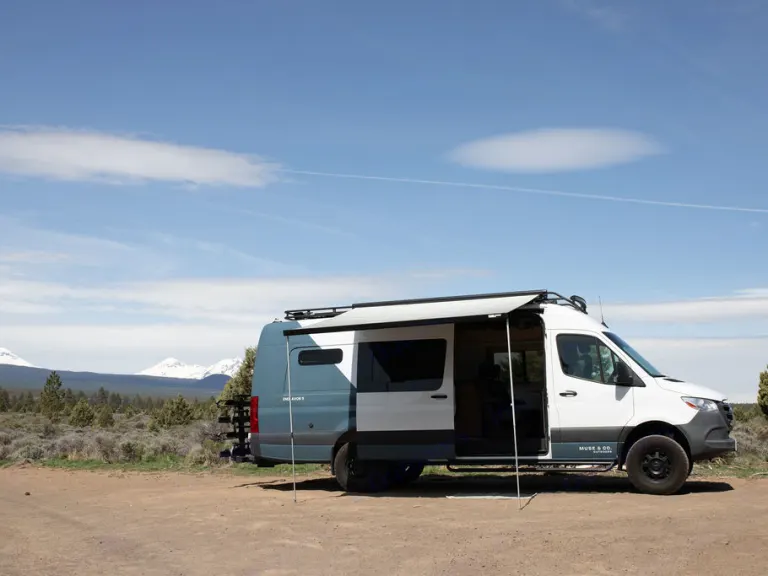 Spacious Interior: Enjoy plenty of room for relaxation and storage. The van features 5 seatbelts and comfortably sleeps 3 adults or 2 adults and 2 children*, making it ideal for family adventures or trips with friends.Ample Gear Storage: The van includes a dedicated "garage area", perfect for storing your outdoor gear and equipment, ensuring you have everything you need for your adventures.Adventure-Ready Amenities: Equip your outdoor lifestyle with bike racks and a built-in air compressor for all your biking needs. Hit the trails and explore the great outdoors without leaving your gear behind.Built-In Bug Screens: Enjoy open air living comfortably with built-in bug screensStay Cool from the Sun: Large Fiamma 45 outdoor awning for shade and protection from the elementsOutdoor Rinse Station: Rinse off after a surf or an exhilarating day of exploration with the rooftop outdoor tank setup, ensuring you can clean up before settling in for the night.Surf Racks Included: Whether you’re hitting the waves or just enjoying the beach, our van comes equipped with surf racks, making it easy to transport your boards to the ocean.Well-Equipped Kitchen: Cook your favorite meals on the go with a full kitchen, featuring a refrigerator, stove, sink, and ample counter space.Comfortable Living Space: The thoughtfully designed interior includes comfortable seating, lighting, and ventilation to create a welcoming atmosphere for relaxation after a day of adventure.Sleep Like a Dream: Organic Coyuchi bed linens for an eco-friendly sleeping experience and maximum comfort offered for both Queen bed and Dinette ConversionConvenient Restroom Solutions: Luggable Loo portable, waterless toilet for emergencies (needs to be emptied out; a charge will apply for clean-out if not done)4x4 Capabilities: Tackle any terrain with ease! Our Sprinter van is equipped with 4x4 capabilities, ensuring you can go off the beaten path and explore rugged landscapes with confidence.Eco-Friendly Power: Equipped with solar panels and a powerful battery system, you can enjoy off-grid adventures without sacrificing comfort.Cell Boost: Bob Weaver comes equipped with a cell boost option that can be toggled on and off. Turn on when you need an extra boost of range and turn off when you're ready to unplug.All-Weather Comfort: The van is insulated for year-round use, keeping you warm in winter and cool in summer, so you can enjoy your travels no matter the season. Although we don't boast an AC unit, "Bob Weaver" has a powerful ceiling fan that is incredibly trusty to keep all guests cool and comfortable.Easy to Drive: With its high clearance, 4x4 drivetrain, and backup camera, "Bob Weaver" is easy to maneuver, making it perfect for both urban and off-road trips.If you’re into exploring new horizons, our custom van is your gateway to adventure. Book now and create unforgettable memories as you experience the freedom of the open road!*Please note there is one queen size bed suitable for two adults, and one dinette conversion. The designers of this build state the dinette conversion is suitable for one adult, or two children. It is a touch wider and shorter than a twin sized mattress, so may not be comfortable for someone who is taller.What's included• Kitchen & Cleaning