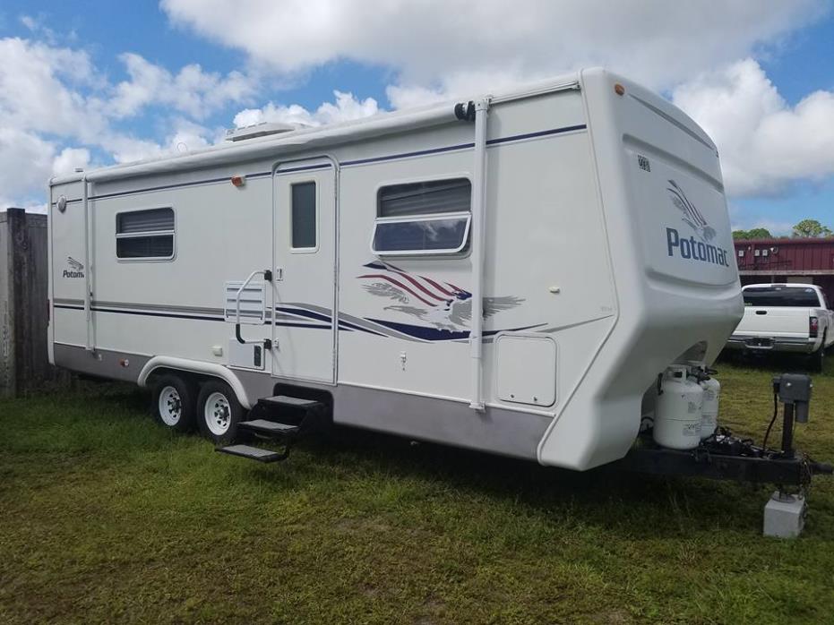 2003 Potomac 276RES supper clean. Two bunker beds and a main room with sliding door. New A/C , clean shower, new refrigerator and microwave. One sofa bed and table for 4. Two axle trailer with spare. All connections for power and water. Extra compartments on back for storage. No pets , no smoking no festivals.