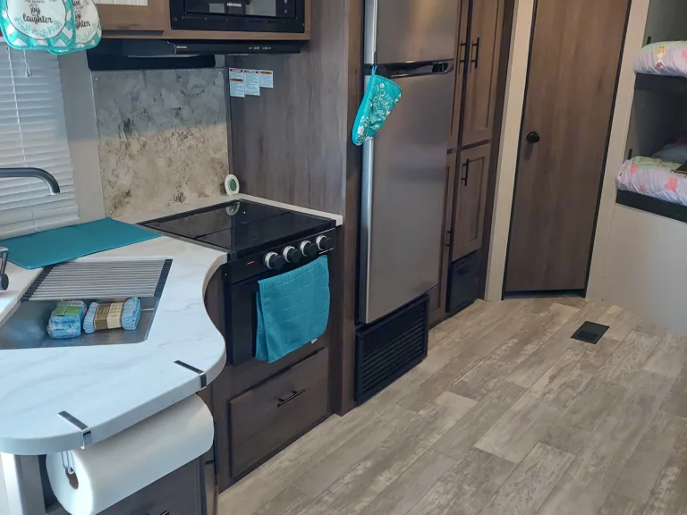 This beautiful travel trailer is exactly what you need for a great vacation. Easily sleeps 8 with two full size bunk beds, dinette that turns into a large bed, and a queen size bed. It also has 1 full bath with shower and toilet and the master bedroom has a toilet. The rv is spacious but lightweight. Can easily be towed with a half ton truck. Camper weighs approximately 7600lbs packed with all your supplies.***Generator not provided***What's includedMany extras included to ensure you have an enjoyable experience. Other things to noteNo pets allowed inside of RV.No drug usage of any kind inside of rv or while in possession of rv. To include Marijuana.No beach parking. This includes Elephant Butte beach parking. Dedicated RV sites are permitted.Please obey all traffic laws. Max speed with the rv is 60 mph as the tires are not rated to handle faster speeds. This will be checked regularly via GPSFailure to obey these rules will result in charges against your deposit.Cleaning fee if returned uncleaned $100