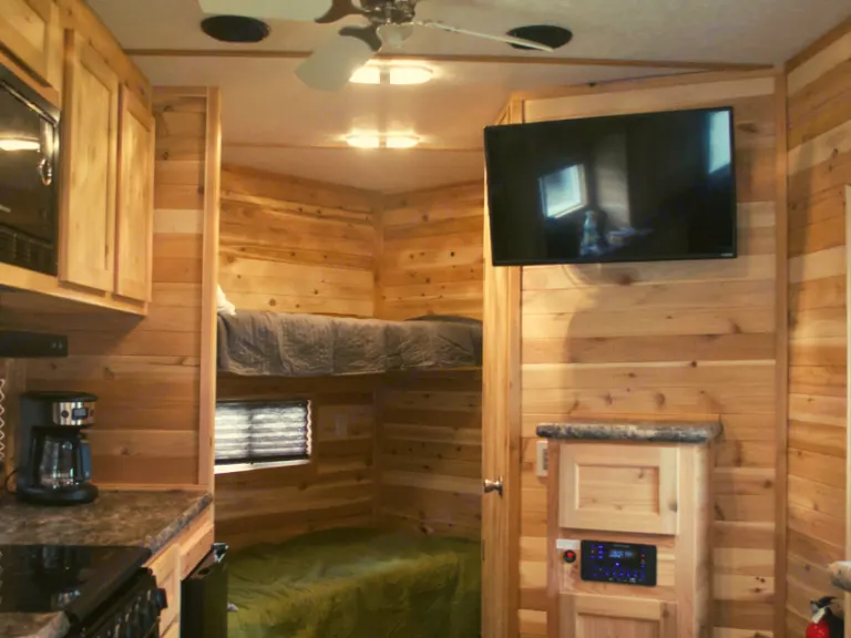 2 -30lb propane tanks (if returned not filled, a full market priced tank fill will be taken out of your security deposit)**Must have minimum 3/4 ton with 7 pin and brake controller to tow this trailer**Feel free to message us with any questions or concerns.What's included*Delivery and pickup within 70 mi radius may be available upon request.-All bedding included.