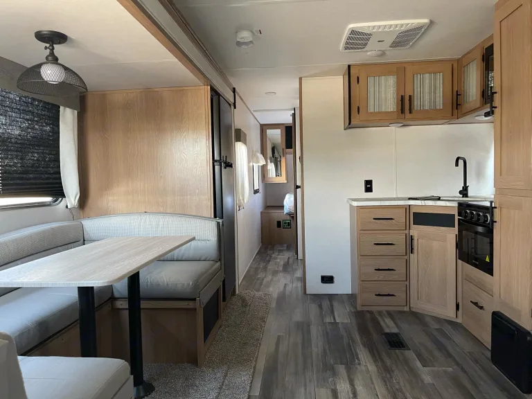 Looking for an easy, fun way to enjoy Elephant Butte Lake and other Southern New Mexico destinations? This beautiful and spacious Prime Time Avenger is the perfect travel trailer for family outings, fishing trips, or a relaxing trip to the lake!About the RV:Spacious & Comfortable – Sleeps up to 8 with plenty of room to relax. Queen bed, 2 Double bunks, sleeper sofa and dinette conversion.Reliable Power – 100W roof solar panel, Cpap solar inverter and a second battery!Private bedroom – Private entrance front bedroom with a walkaround Queen bed and wardrobe storage.Stress-Free Set Up – Book now with the Full Set Up Add-On and get ready for a stress-free, fun-filled trip at Elephant Butte Lake! The RV will be set up prior to your check-in!