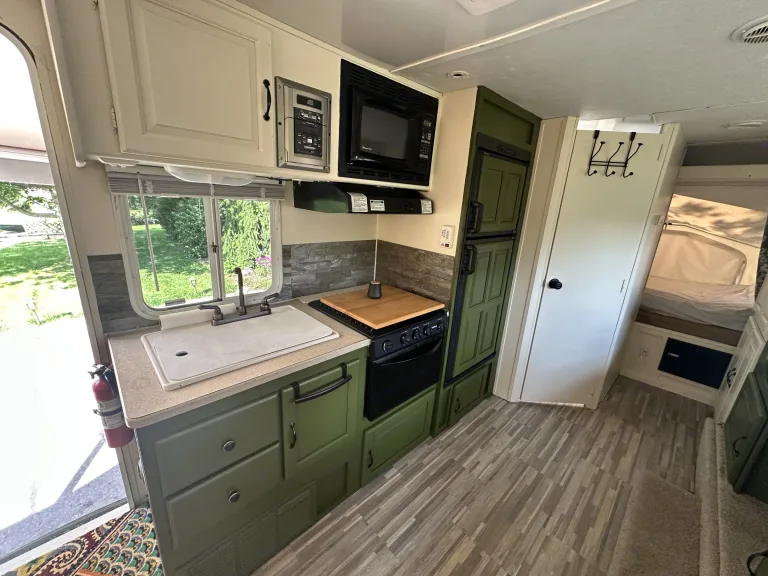 Fully updated interior with a cool color palette of forest green, soft gray, and glacier blueYeti-themed details throughout: custom decals, playful touches, and cabin-cozy texturesFresh paint, flooring, curtains, pillows, bedding and fixtures