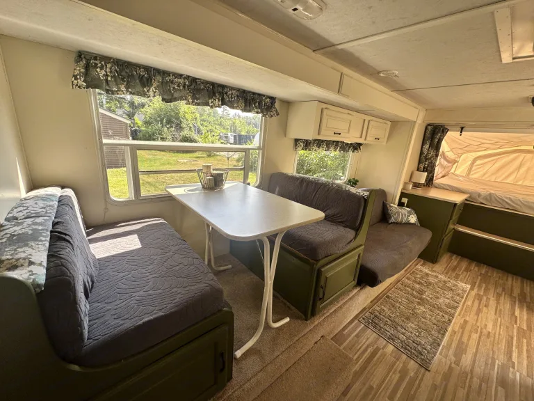 • Never leave the camper with bed canvases open or ceiling vents open- it was a lot of work to replace the floors!