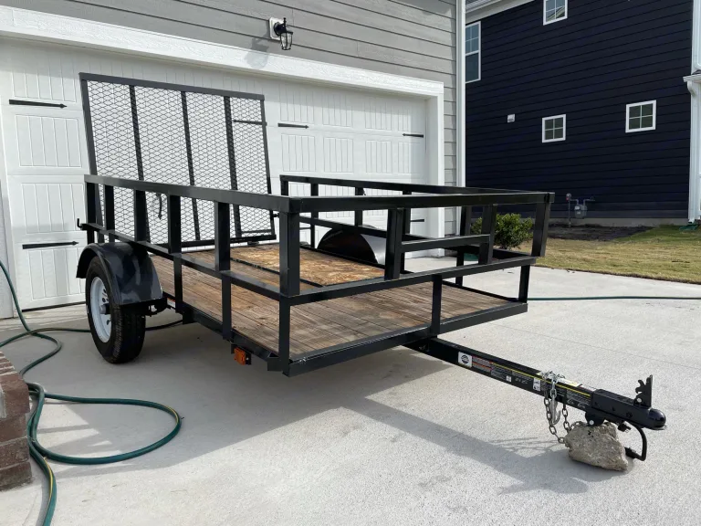 With an easy-to-use hinged ramp on the back this trailer is perfect for loading and moving furniture, motorcycles, and/or other miscellaneous bulk items.What's includedTrailer, ball hitch with 2” receiver (upon request)Other things to noteThe trailer attachment fitting is set up for a 2” ball and a 4-prong style electrical cable. I have a ball hitch fitting that you can use if you need one but you’ll need a 2” receiver on your hitch in order to use it.