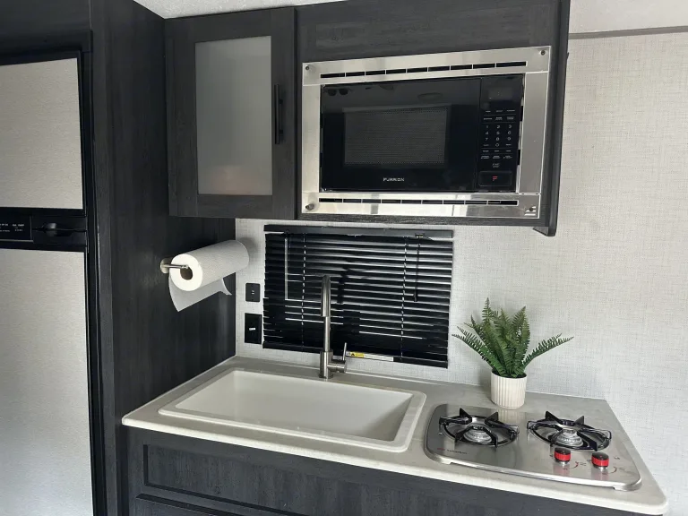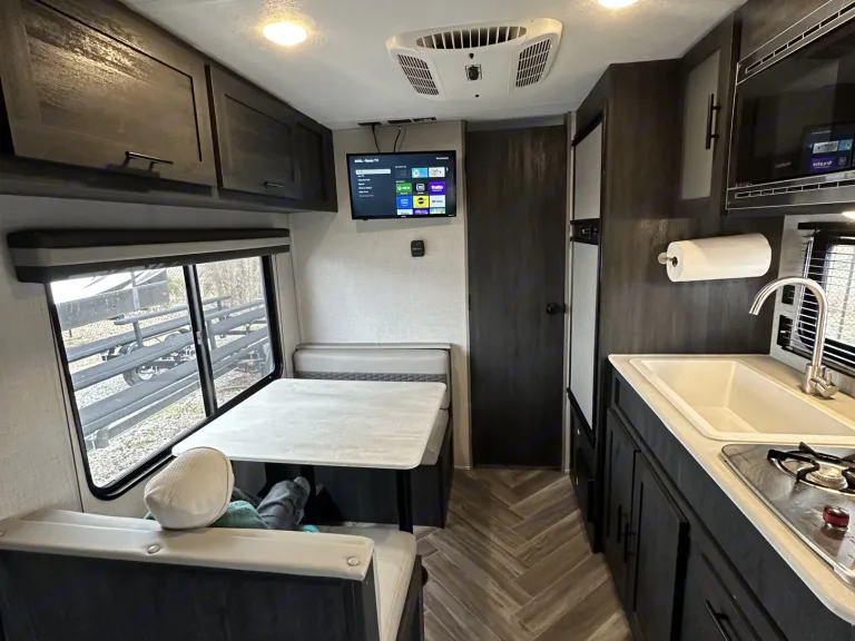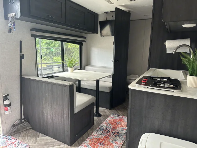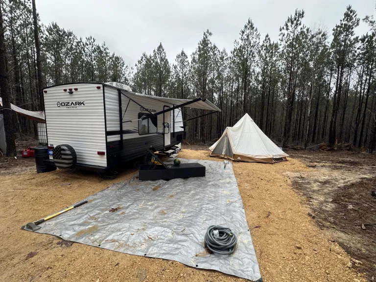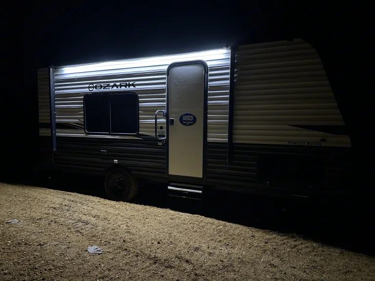 Experience comfort and convenience in this well-equipped 2021 Ozark Forest River 1660FQ—perfect for off-grid adventures or a cozy retreat. Comfortable tree hammock with bug net included.- Fully Stocked for Your Stay: Includes fresh linens, towels, toilet paper, and cleaning supplies. A self-crank lantern ensures you’re never left in the dark.- Off-Grid Comforts: Stay warm with the propane heater and enjoy hot showers with the propane water heater. The efficient fridge keeps your food fresh, whether you’re plugged in or running on propane.- Smart Layout & Features: The queen-size bed provides a restful night’s sleep, while the functional kitchenette allows for easy meal prep. Ample storage, a compact yet spacious design, and large windows make it feel open and inviting.Ideal for those looking to unplug, explorei, or simply relax in nature with all the essentials taken care of with optional 8 person Bell Tent for extra sleeping space and fun “request only, no extra charge”.What's included• Crank lantern