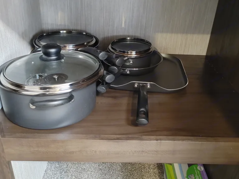 • Included: silverware, kcup machine, pot and pan set, basic cooking utensils, baking pan, cutting board, bottle/wine opener, and dish towels, and more.