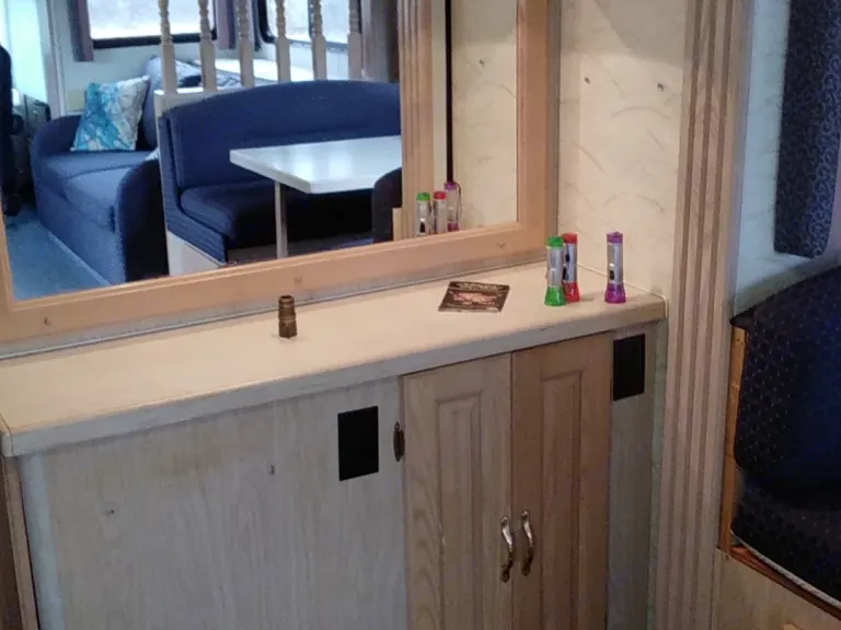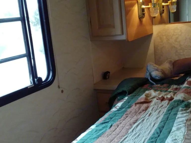 Well taken care of with new tires. Dual rear wheels for a ride s as smooth as a car.Everything works. 4 ft by 16 ft slide adds more room and comfort .Sleeps 6 .Full sized shower with outside hand held shower . 20 ft awning . Bed linens , bathtowels, washcloths , kitchen towels, pots and pans .Lots of storage inside and out .
