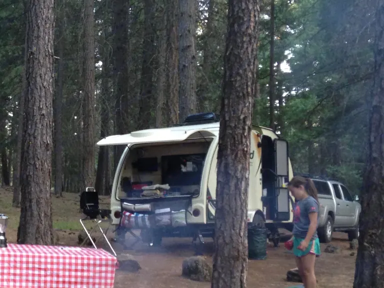 Compact and complete. It has everything you want to camp - and everything you want if you would rather "glamp". Great for a family of four. Mom and Dad have access to a double bed with the biggest cushion top mattress I could find. Kids have bunk beds ... and privacy with the added curtains. Has literally everything...including a 'garage' to store it all.