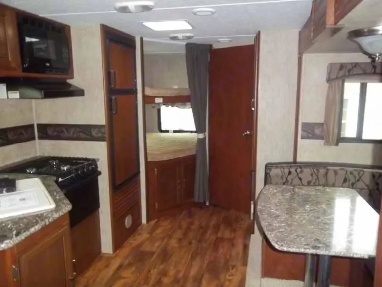 Our 25 foot Passport is nicely equipped with one slide and sleeping arrangements for 4 adults and 3 children. The layout in this holiday trailer provides all the amenities in a smaller easier to park RV. . Included is a good size TV with DVD player, stereo combination as well as inside and outside speakers to enjoy your music. NOT Available FOR U-TOW, Delivery Only.What's included• 32 Piece dish set, 8 large plates, 8 small plates, 8 cups, 8 bowls