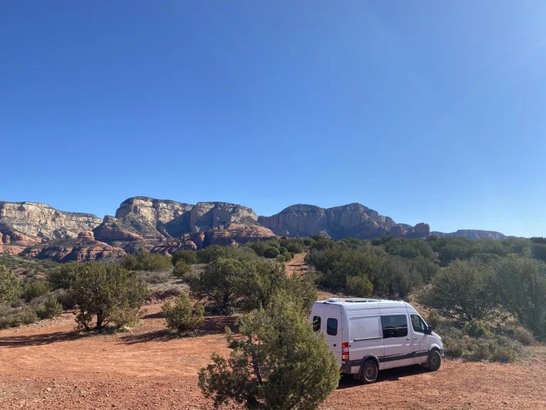 Self converted, eclectic adventure van. I lived and worked in it for a year off the solar so it’s functional - especially in full sun. Rear wheel drive and decent clearance for dirt road riding. A stove for cooking, diesel heater to stay cozy over night, running water with sink, plenty of storage, and lots of windows that I installed for natural light. If you're shorter, you can leave the bed as is (a truncated queen) or you can pull it out to better suit a taller person / two people up to 7 ft long. Enough cooking utensils for two people.Extra charge ($8/hr) for early pickup for late drop may be possible with prior coordination.What's included- Freshly washed and made bed
