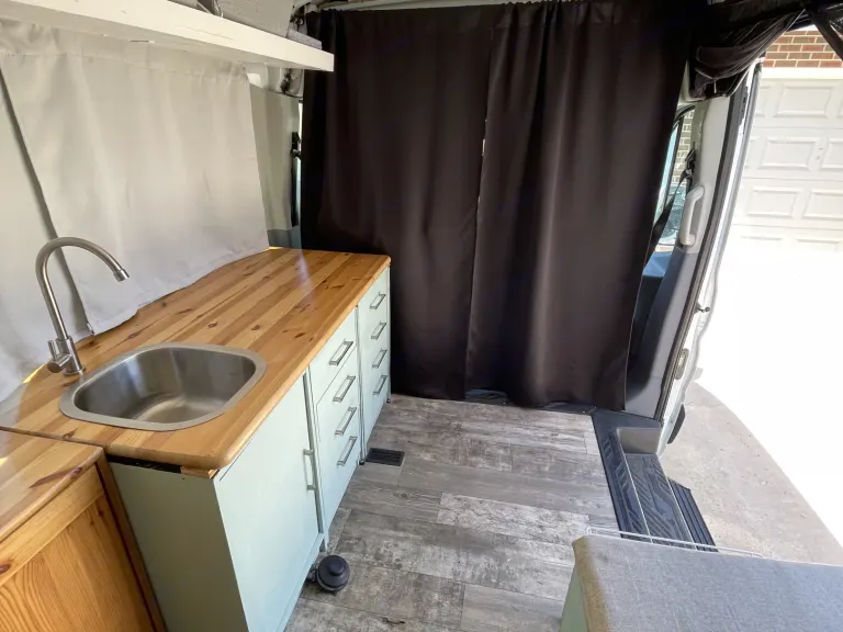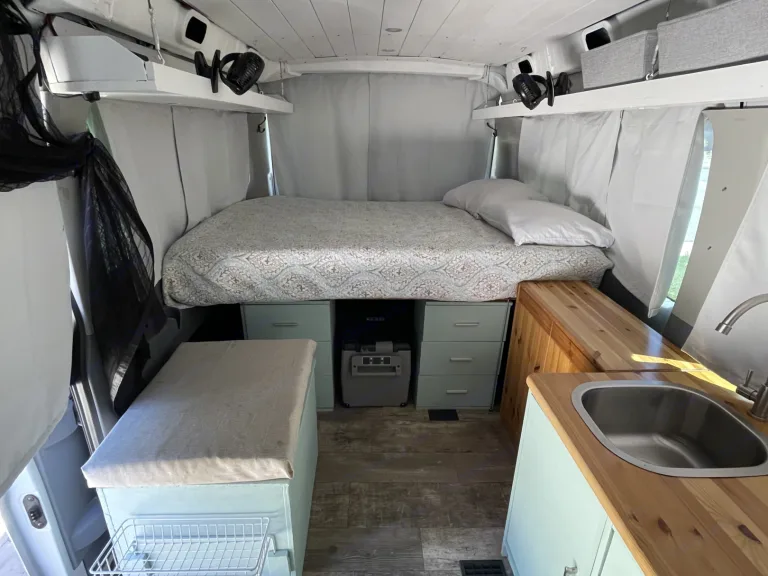 The van was clean and had everything we needed for a weekend festival. The bed might be a little small if you’re tall, but we aren’t so it was super comfortable. We didn’t use the toilet but the sink, stove, and all else was great. Lots of places to stash stuff.