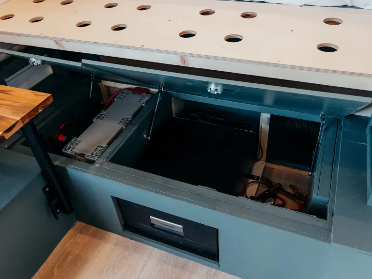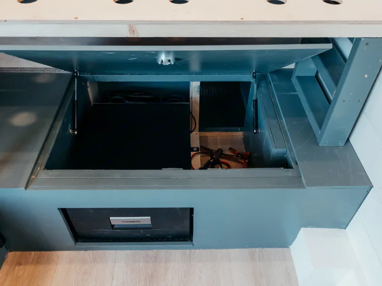 A drawer-style fridge keeps your snacks and drinks cold and convenient. You’ll also have plenty of storage for gear and pantry items.Cozy, Clean Interior