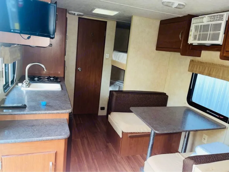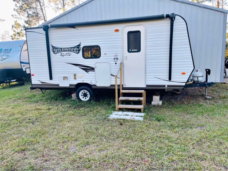 Calling all adventurers! Explore the wonders of the outdoors in comfort with this cozy 2015 Forest River Wildwood X-Lite travel trailer. Perfect for families or small groups, this pet-friendly RV boasts easy towing and comfortable sleeping for up to 4 with a queen bed, twin XL bunks, and a convertible dinette. The fully equipped kitchen lets you whip up delicious meals on the go, while the private bathroom with a shower ensures convenience. Enjoy worry-free camping and relax under the stars with your loved ones. Book your unforgettable RV adventure today!What's includedFull linens. Basic cooking equipment. Electric Jack