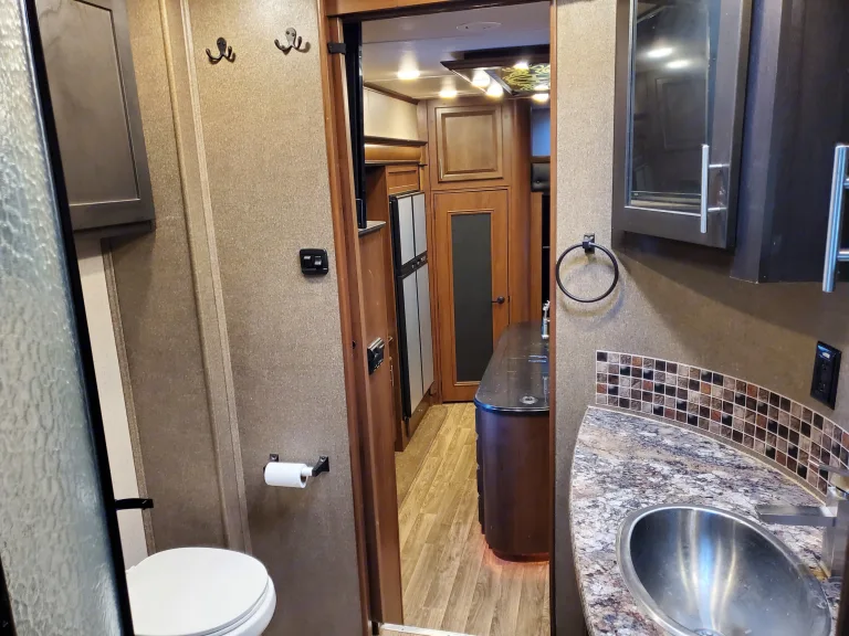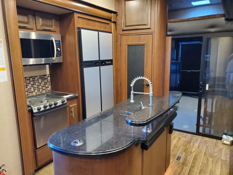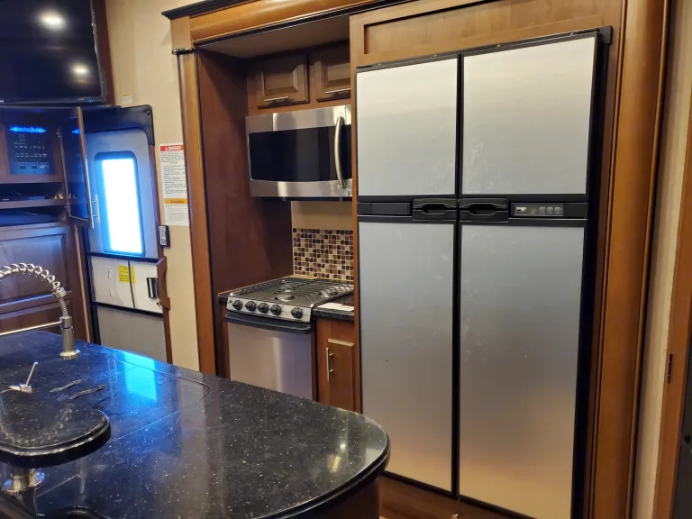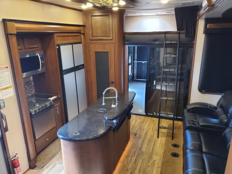 Nice 5th Wheel Toy Hauler with room for all the toys and family. Toy compartment is 14' long and fits most 4 seat SxSs or several bikes 4 wheelers etc. Has 4 queen beds when toy area is converted into double queen bunks. Beautiful Master Suite with built in dresser/closets plus slide out. Direct entrance to bathroom. 4 seat reclining sofa. 3 tvs with sound system. Double Fridge for all the groceries and kitchen Island. 3 AC units and 60 amp service. Take all the comforts of home into the wilderness.What's includedCamping chairs roasting sticks charcoal grill if desired. On board Generator and much more.RecommendationsGreat rig for wide open spaces and playing with the toys. For designates campgrounds make sure they accommodate length this is a big long rig.Other things to noteRV expected to be returned in same condition as recieved with tanks dumped and inside cleaned. If excessive cleaning is needed $250 charge.