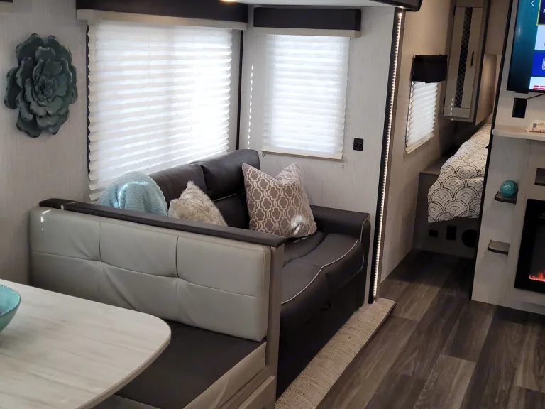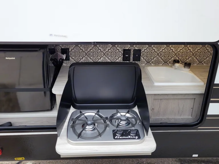 Super King Kong sized storage up to 67.5 cu.ft. of pass-thru storage and large metal bumper grate for even more storageRULES, FEES, OPTIONAL ADD-ONs:Deep cleaning and preparation fee: $50 (This is a one time fee, in addition to the nightly fee, and will be deducted from your deposit upon return.) Includes deep cleaning/sterilizing (based on CDC guidelines) of all surfaces. Clean linens, dishware/utensils, and refill of propane tanks!Return the camper tidy, wiped down, swept out, black and gray tanks empty, we will take care of the deep cleaning, stocking, and refilling of propane tanks. We will do a complete cleaning and disinfection of the camper to ensure the next vacationer has a pristine, sanitized, clean camper to rent just like you did! As mentioned, this does not including dumping the holding tanks, that responsibility is on you.* Please return the RV in the same manner you received it, and there are no additional cleaning fees. The expectation is, if you spill it, clean it. If you track it in, sweep it out. Otherwise, we'll charge $50 (min) out of your deposit for us to clean up after you. :-)We hate add on fees just like you. However, we want to keep our initial deposit feasible for you, so that is why we've added these in the event you want to take advantage of these extras.Pets are welcome!OPTIONAL ADD-ONs:
