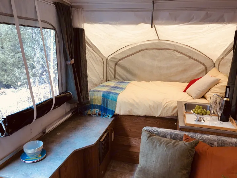 Rolling in under 1500 lbs.... is our tent trailer! It’s a wonderful trailer that has all the amenities you need when camping. There is electrical hook up but we usually camp without it and use the 2 propane tanks to operate the fridge, heater if we need it and the stove (located outside under the front awning). The trailer comes with a queen and double bed (with mattress toppers) and the table area can be a single bed. Plenty of storage and an outdoor rug for under the awning make this a super star for camping. Included are 2 camping chairs, plates and bowls for 4, a few camp games and an extra camping tent (without sides) for over a picnic table. We love our trailer and hope others will too!