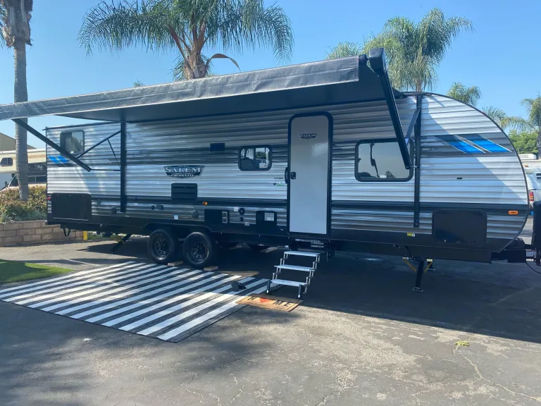 Welcome! Our trailer is perfect for your next staycation in San Diego County. Out small family owned business, we love helping our guests with their camping trips! We try so hard to ensure everything is perfect!You book your campground (I have recommendations if you’d like) and we will deliver to a local campground, set up and pick up for you so all you have to do is enjoy!Junebug comes with kitchen utensils (cups, bowls, plates, silverware, pan/pot, etc.), a BBQ (attached to the t super) and a family pack of S’mores! Our trailer has a modern Joanna Gaines look. It sleeps up to 8 people very comfortably!There is a Roku TV that has applications for you to log into with your accounts. The TV can be inside or outside (being brought in at night).There is also speakers inside and outside that you can connect your phone to or listen to the radio.The trailer comes as you see in the pictures with the outdoor chairs, tables, rug and BBQ.Make it a staycation, distance learning, working from home, whatever you’d like!For bookings longer then 14 days, please provide detail and information that pertains to your needs or plans including length of time.What's includedThe entire trailer is yours! Including the BBQ and camping chairs.We provide sheets for all the beds, kitchen utensils including a coffee maker & coffee and a s’mores kit!There is also bathroom and beach towels (4 each).Also provide a fire pit (guests are to verify if campground allows).Junebug comes with kitchen utensils (cups, bowls, plates, silverware, pan/pot, etc.), a BBQ (attached to the t super) and a family pack of S’mores! Our htrailer has a modern Joanna Gaines look. It sleeps up to 8 people very comfortably!There is a Roku TV that has applications for you to log into with your accounts. The TV can be inside or outside (being brought in at night).There is also speakers inside and outside that you can connect your phone to or listen to the radio.The trailer comes as you see in the pictures with the outdoor chairs, tables, rug and BBQ.Here is the sleeping options: