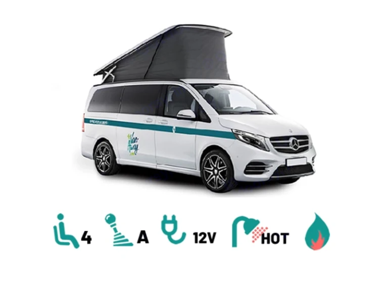 Conçu pour accueillir jusqu'à 4 personnes, le Mercedes Marco Polo propose un peu plus de place que son cousin le California. Son look inimitable fera tourner les têtes sur votre passage !
