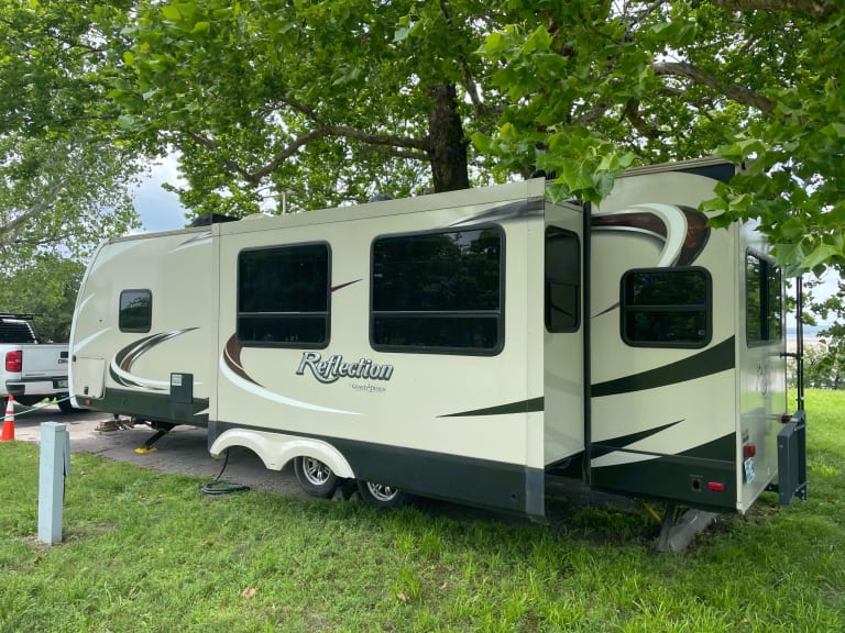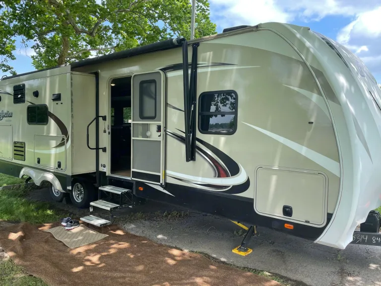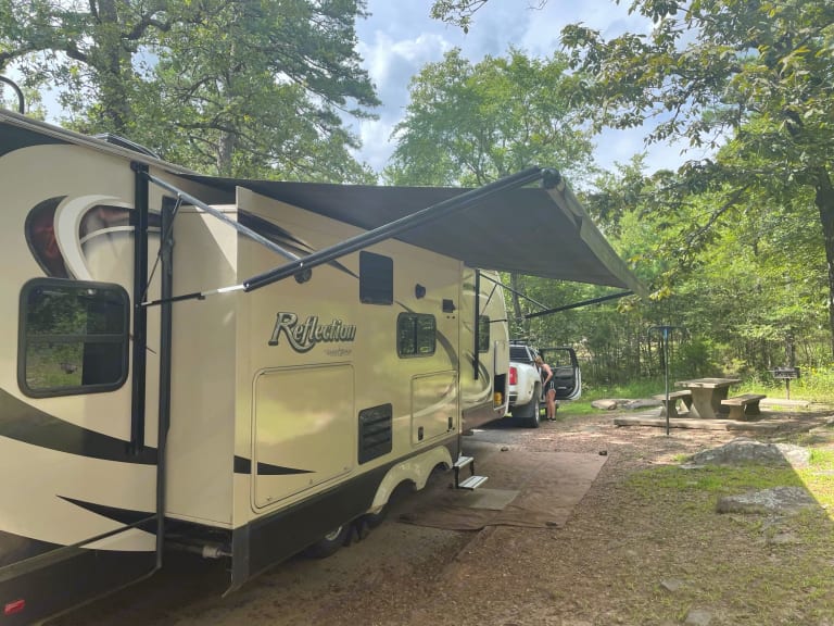Large bumper pull that feels like home. Very nice and comfortable with great amenities! 1 Queen Bed and a pullout couch that makes into a queen bed. We can add a Queen Inflatable Bed to sleep 2 more for a total of 6. This beautiful trailer makes the most rugged country comfortable and enjoyable. ***Delivery AND Pick UP Only***What's includedWe include fresh linens for the master bed and for the pullout couch. Pillows are also included. We supply RV friendly toilet paper which must be used!**We DO NOT supply pots, pans, dishes, silverware or towels. If there are items like this you will need, we can make arrangements to have them available.***RecommendationsIn our area we have a number of great parks! Yogi Bears Jellystone Park in Eufaula is great, Extreme RV Campground in Eufaula. Robbers Cave is within our area and is very beautiful.Other things to noteWe do allow awning use however the awning MUST be retracted (closed) when the trailer is left alone (unsupervised) OR when wind gusts are high enough to move the awning OR when it’s raining OR any combination of the above. Awning damage is the sole responsibility of the renter. The awning is very delicate and can easily be damaged. When in doubt, close the awning!