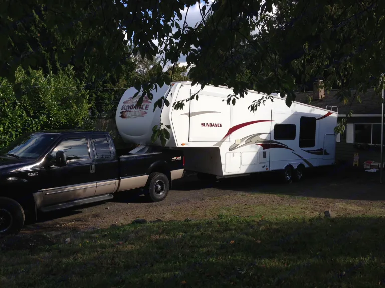 We purchased our 5th Wheel in 2016 from a previous owner. This RV is in excellent condition and sits on the side of my house under a covered carport. I invested in the carport because the previous owner always kept it covered and I wanted to do the same. The RV sleeps 6 even though we usually just have 4 on our camping trips. We usually take it out 2-3 times a year. This RV has the most comfortable queen size bed you'll ever sleep on and comes with a slide out bunkhouse that your kids will love. There is a TV and DVD player in both rooms. There's a total of three slide outs so you have plenty of room.
