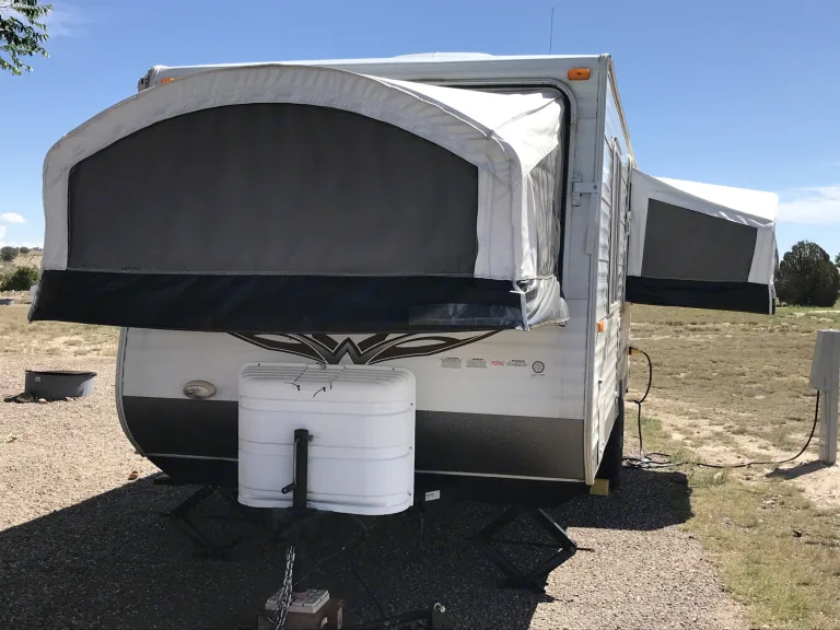 This little travel trailer has everything you need--shower, toilet, microwave, oven, three burners, fridge, freezer plus two pop-out sleeping areas to easily sleep 5. We will include the tow stabilizer to make towing this light-weight camper even easier on your vehicle. Solar panel and inverter recently added. Linen, including towels, not provided unless requested.Required to have a 7 prong trailer plug in to utilize electric trailer brakes.