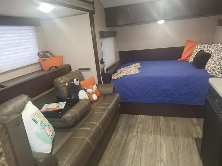 Beds: 4 beds - 1 Queen, 1 teddy bear bunk and both the couch and table fold out to beds