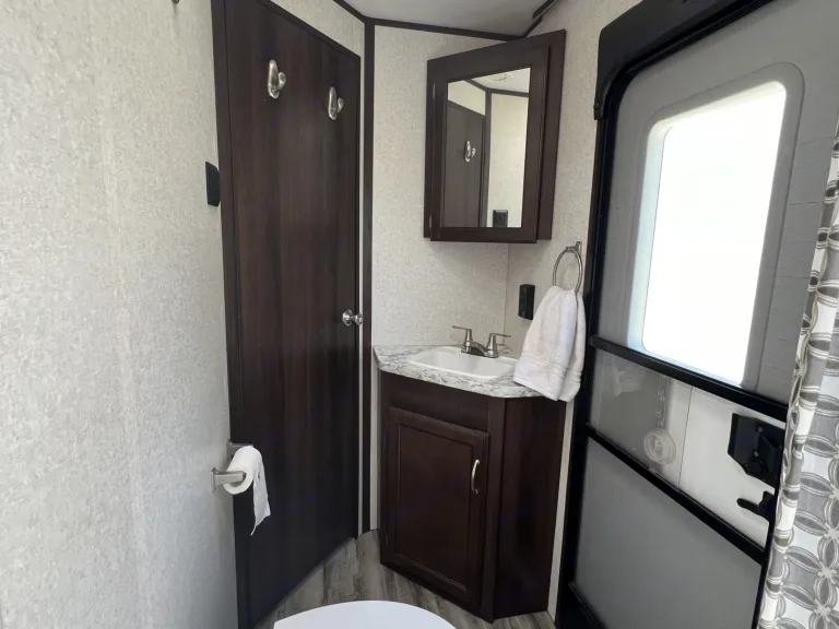 Our 2018 Jayco Jay Flight SLX 287Bhsw has been our family's trusted adventure companion for three years of camping across California's coast and desert. This well-maintained 33-foot bunkhouse comfortably sleeps 8, making it ideal for families.The layout features a private master bedroom with queen bed, double bunks in the rear, and convertible dinette and sofa for additional sleeping. At 33 feet, it's spacious enough for comfort but still manageable to tow with most half-ton trucks.Fresh tires (2025) and regular maintenance mean this trailer is ready for your next adventure, whether you're heading to Yosemite, the coast, or the desert. We've kept it meticulously clean and well-cared for because we use it ourselves several times a year.Perfect for families who want to explore California's natural beauty without sacrificing comfort. The bunkhouse design gives kids their own space while parents enjoy privacy. Full kitchen, bathroom with shower, AC, and outdoor kitchen make camp life easy.We're happy to answer questions and share our favorite camping spots in the area. Let us help you create great family memories!RecommendationsaddOther things to noteadd