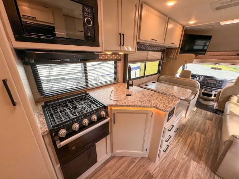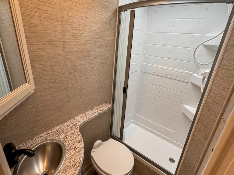 Bathroom: A full bathroom with a shower, toilet, and sink ensures you have all the conveniences of home while on the road.