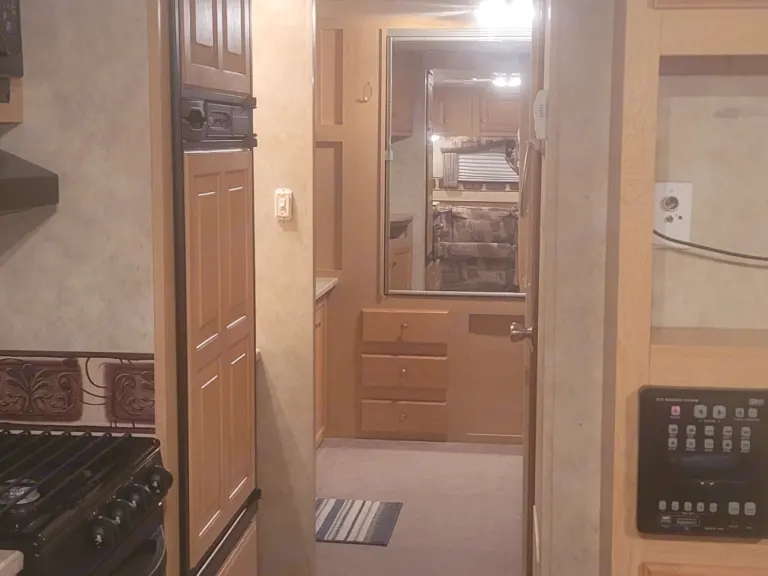 There is a large awning and outdoor shower. Trailer has hot water, central heat and air conditioning.