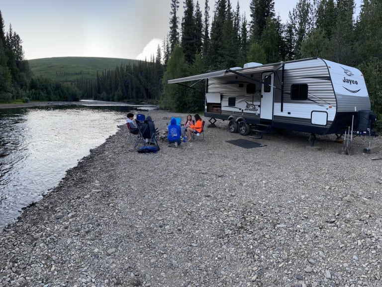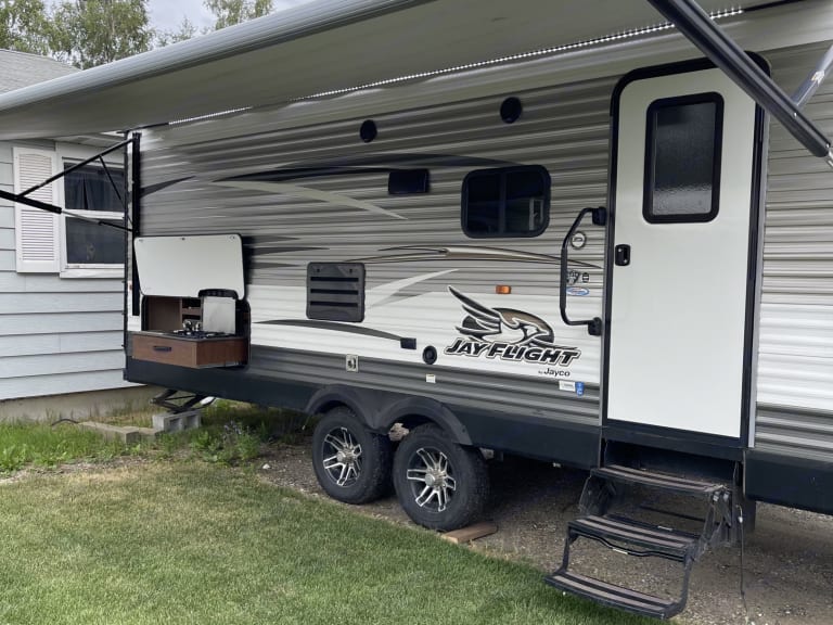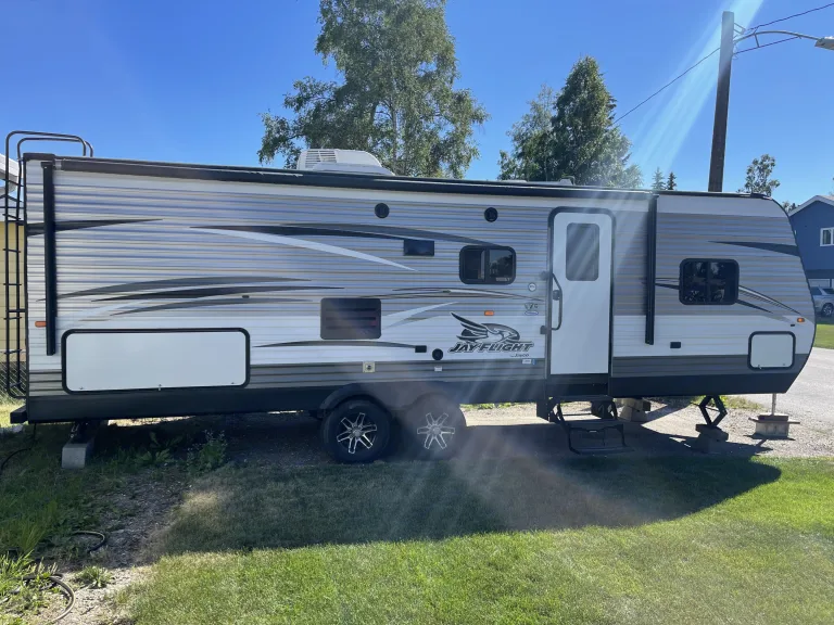 ***High Winds Damaged Our Awning, Will not be functional the rest of 2025 season***Just bought this new to us camper and we love it. Unfortunately, we can't always be out exploring Alaska and all its beauty, so we are letting others use it when we can't. We have used it a few times already and found it really accommodating for our family of 5. The two bunks are slightly larger than a twin and are really roomy. The dinette conversion bed can also sleep 2 if needed, it's about the size of a full. The sofa pullout is about the size of a full-size mattress as well. The main bed is a queen and easily fits my wife and I and our youngest daughter if she chooses to. What's includedWe include a basic pot and pan set, cooking utensils, can opener. Best to bring your own bedding so that we can keep our cleaning costs down, since we allow pets.