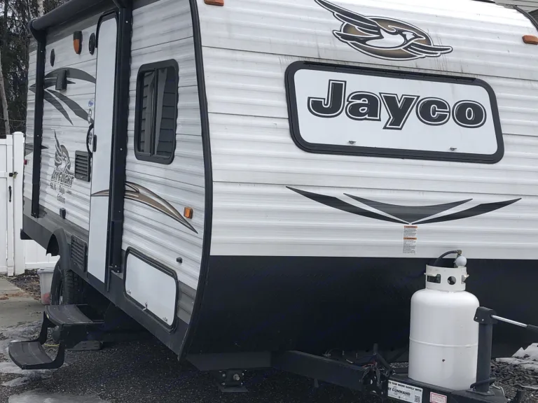 Are you ready for your Alaskan adventure. Save money on hotel rooms with this beautiful, like new jayco trailer. Queen bed up front, bunk beds in back ( rated for 150lbs each ) and a ya me that folds into another bed so you can sleep 5-6 comfortably. Shower and toilet. Stove, microwave and frig. Plenty of storage. Great awning and sterio syste. Easy to pull. Hook up to water or haul your own. This makes camping even more enjoyable.