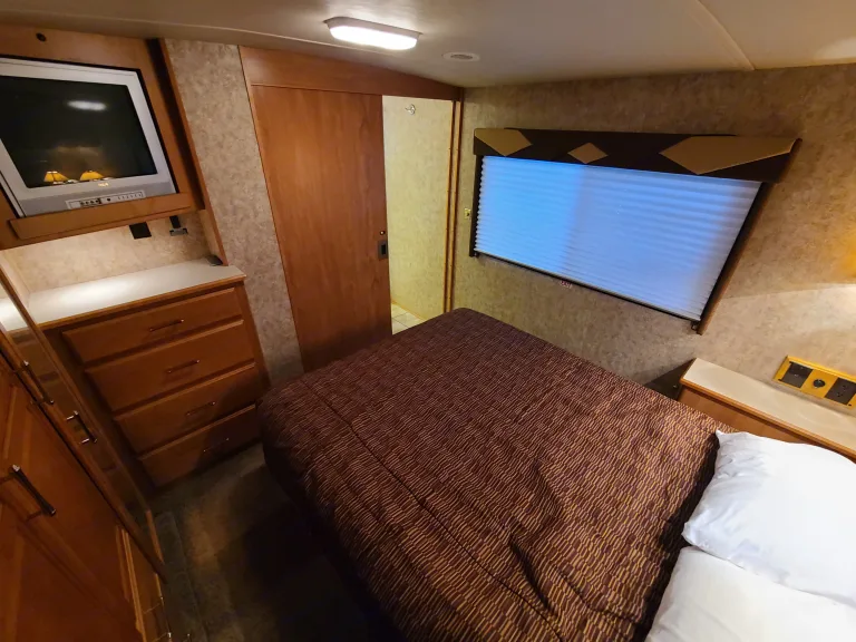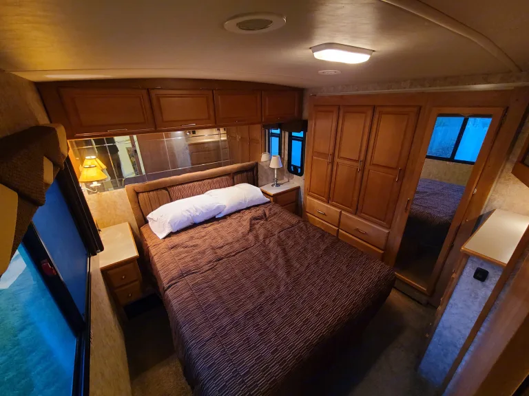 The rear bedroom has a big slideout wall, walk around queen size bed, lots of closet space & drawers with its own door to make it private.The kitchen area has lots of counter space, a large 4 door fridge/freezer with ice maker and comes equipped with convection oven microwave..We are happy to accommodate special requests, please let us know what you need.