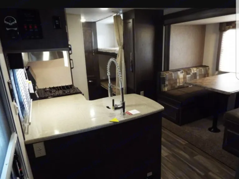 Awesome travel trailer! Bunk beds, Queen master bed in separate bedroom and the dinette turns into a bed, as well! Shower/tub combo inside. 2 tvs and dvd player/radio. Built in antenna. Lighted roll out awning, outdoor shower, electric jacks, so easy to set up! Plenty of room for the whole family!